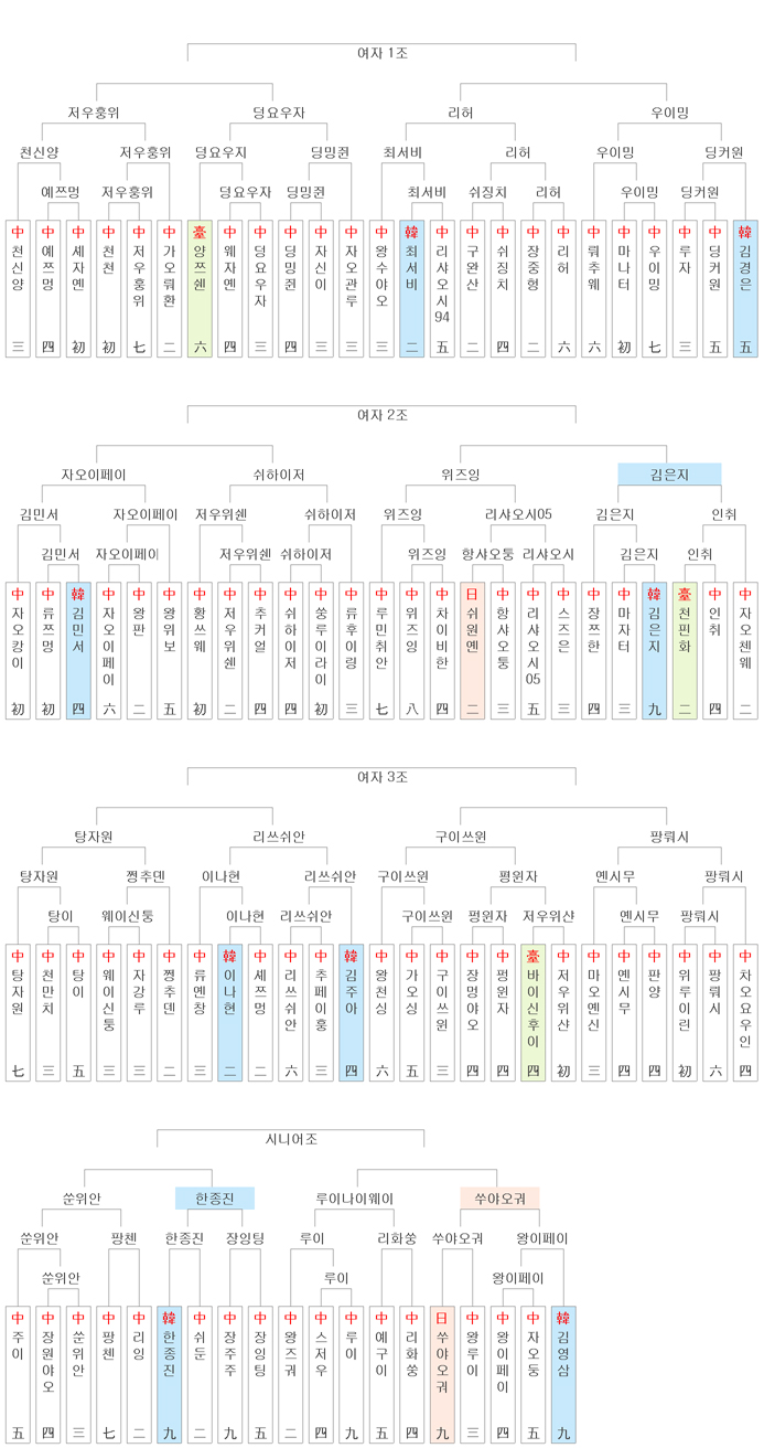 12일 열리는 일반조 한국 기사들의 결승 대진은 박정환-투샤오위(0:2), 변상일-탄샤오(2:4), 이지현-장쯔량(0:0), 이원영-후야오위(1:0), 심재익-자오페이(0:0, 괄호 안은 상대 전적).