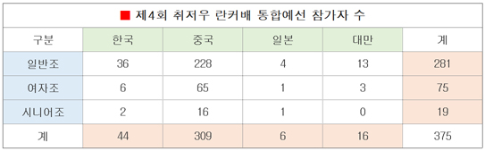 제한시간도 길다. 각자 2시간에 1분 초읽기 5회다. 판당 5시간을 넘기기 일쑤다. 경쟁률이 상대적으로 덜한 일반조는 그나마 11일 하루 휴식일이 있지만 여자조와 시니어조는 그마저도 없다.