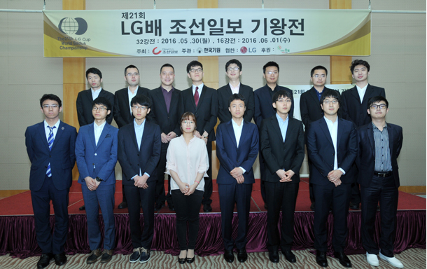 ▲ 32강전을 승리한 16명의 기사들. 한국 6명, 중국 9명, 일본 1명이다. 한국기사 6명은 전원 중국기사와 16강전을 치른다.